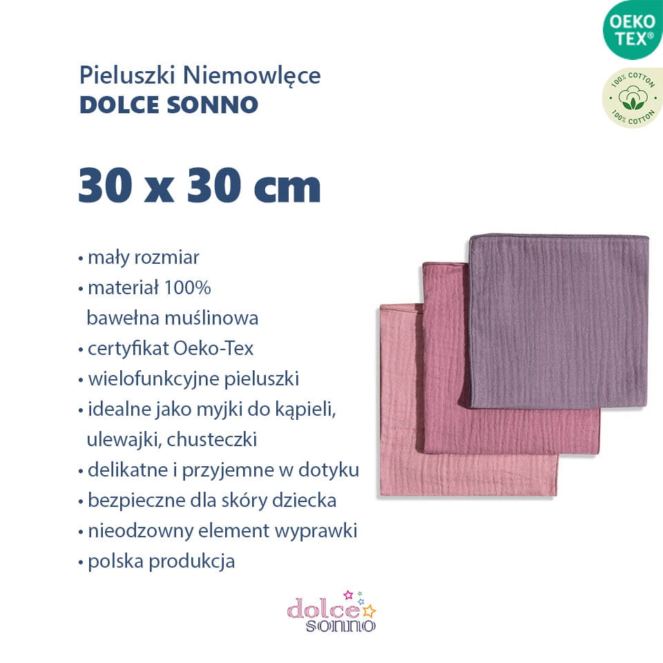 Wielofunkcyjne Muślinowe Pieluszki 3Pack 30x30 cm - Dolce Sonno