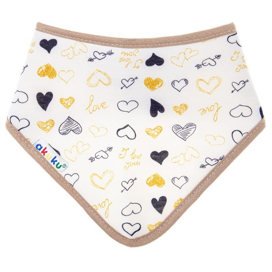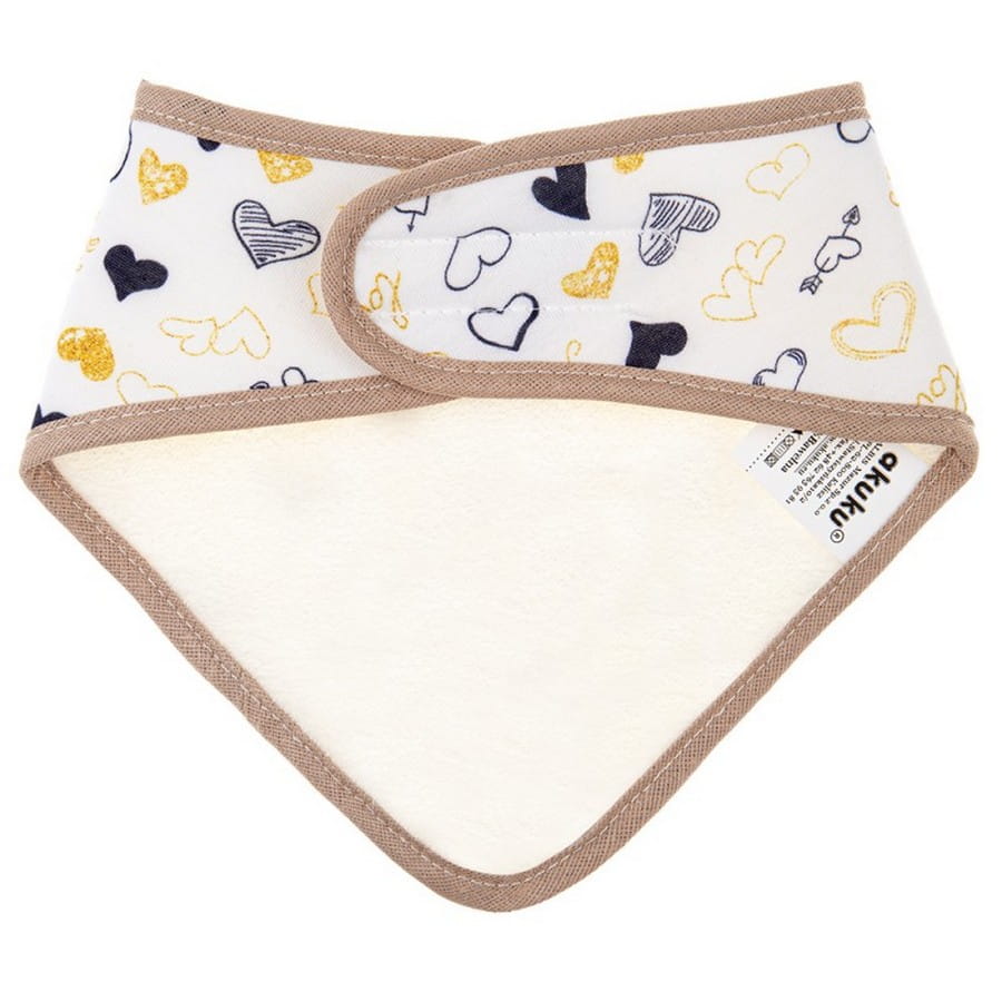Bawełniana apaszka, śliniak dla dziecka na rzep - Serduszka Beż | Akuku