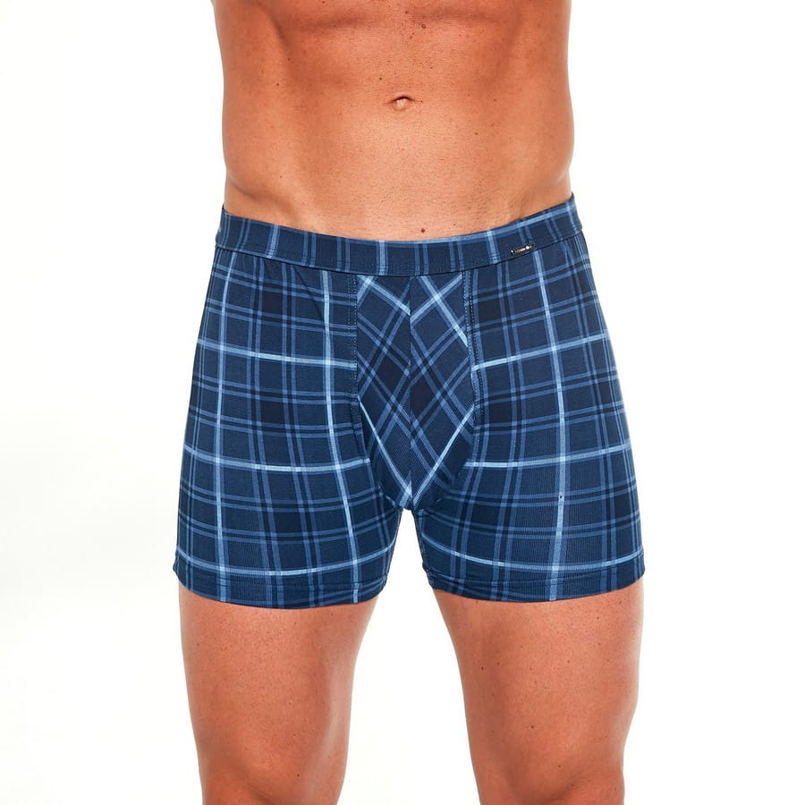 Bokserki męskie bawełniane Prime w kratkę jeans | Cornette 904/84