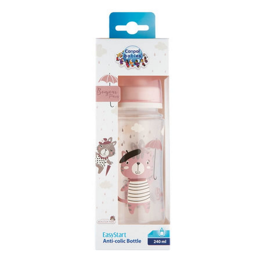 Butelka antykolkowa 240ml szeroka Bonjour Paris - różowa | Canpol 35/232