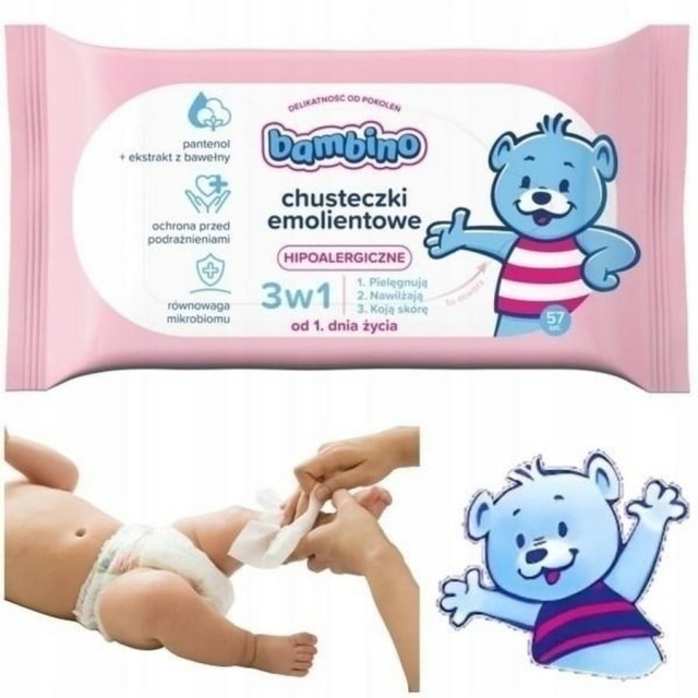 Bambino Nawilżane Chusteczki emolientowe 3w1 – 57 szt.
