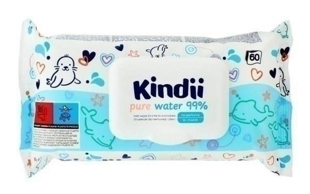 Chusteczki nawilżane wodą dla niemowląt i dzieci 60 szt. Kindii Pure Water 99%