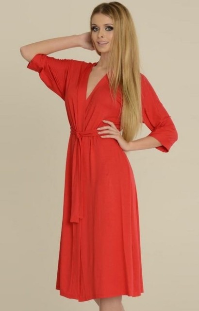 Długi szlafrok damski Visa z delikatnej dzianiny - Czerwony | DeLafense - 942