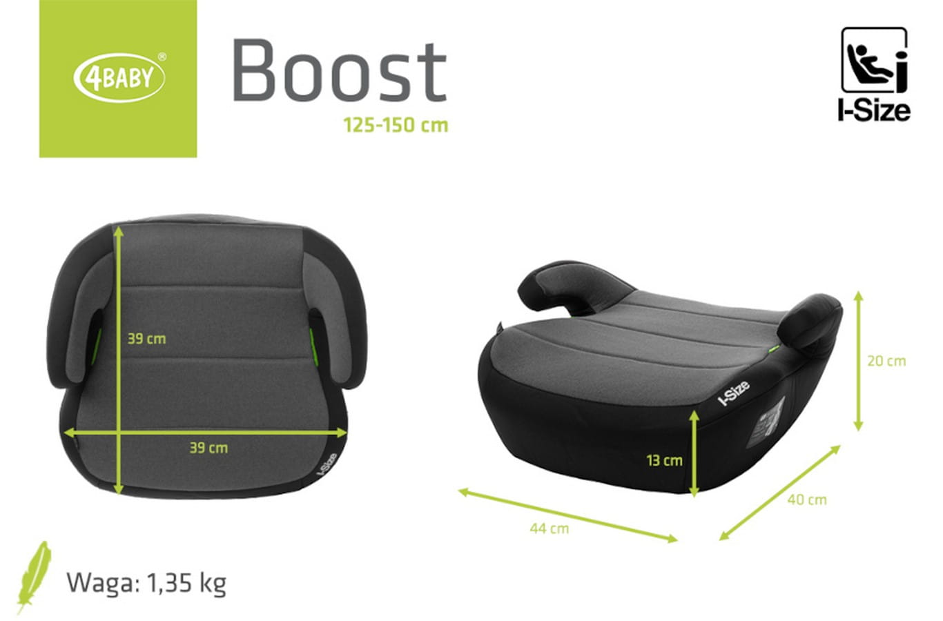 Fotelik samochodowy siedzisko 4BABY BOOST I-SIZE 125–150 cm GREY lekka podstawka