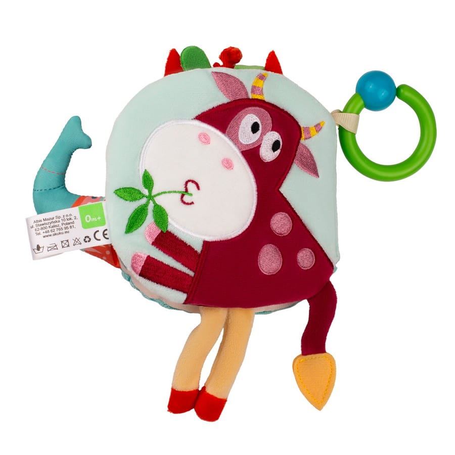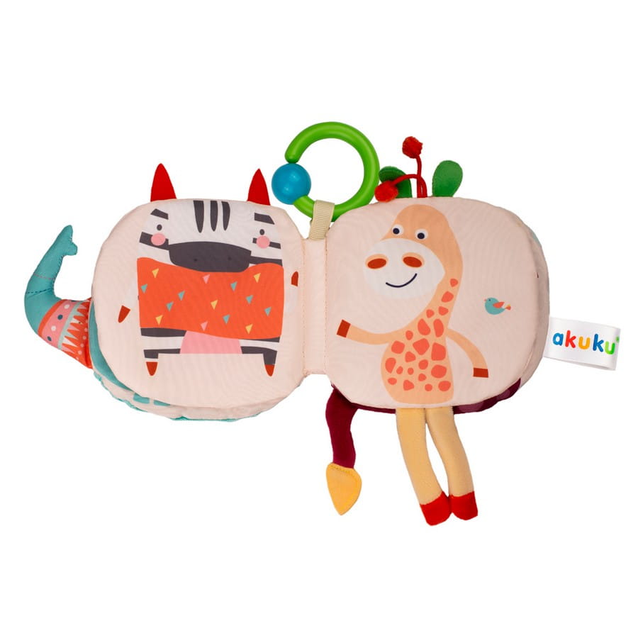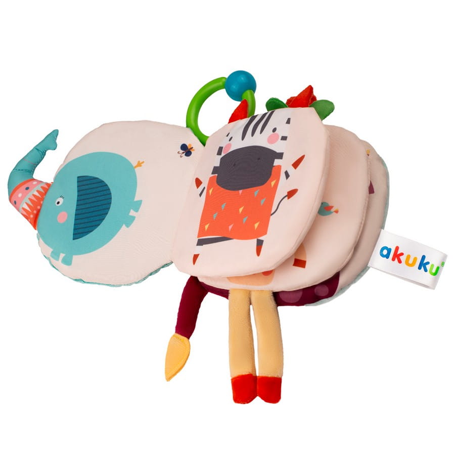 Dzięki praktycznemu zaczepowi w formie kółka, książeczkę można łatwo przypiąć do wózka, łóżeczka lub fotelika samochodowego – aby ulubiona zabawka była zawsze pod ręką!