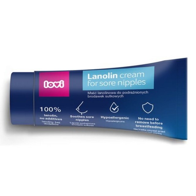 Maść lanolinowa LOVI przeznaczona jest do stosowania w okresie ciąży i karmienia piersią. Chroni brodawki przed otarciami, pękaniem oraz łagodzi podrażnienia. Zawiera 100% lanoliny jakości farmaceutycznej, bez dodatków, co sprawia, że jest hipoalergiczna i w pełni bezpieczna dla mamy i dziecka.