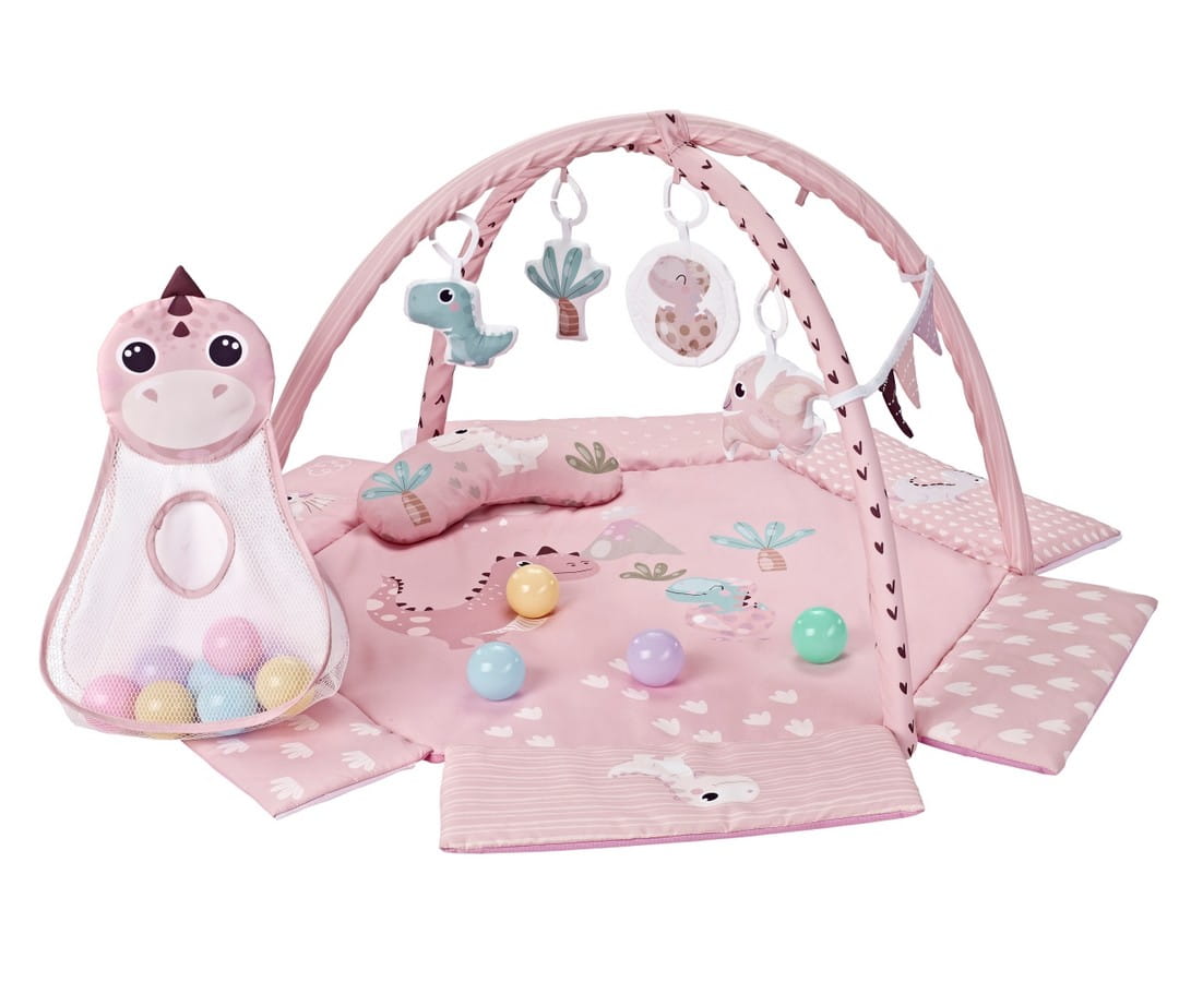 MILLY MALLY TinyMini Dino Pink to interaktywna mata edukacyjna dla niemowląt od pierwszych tygodni życia, zaprojektowana z myślą o bezpiecznej zabawie i harmonijnym rozwoju dziecka. Pastelowa kolorystyka i uroczy motyw dinozaurów przyciągają wzrok i zachwycają maluchy oraz rodziców.
