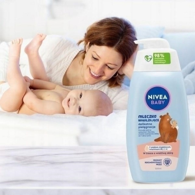 Delikatne Nivea Baby Mleczko nawilżające 500 ml to kosmetyk stworzony z myślą o codziennej pielęgnacji wrażliwej skóry niemowląt i dzieci już od pierwszego dnia życia. Formuła mleczka intensywnie nawilża, odżywia i chroni skórę, wspierając jej naturalny proces rozwoju i wzmacniając barierę ochronną. Produkt zawiera naturalny olejek migdałowy oraz witaminy B5, C i E, które pomagają utrzymać skórę miękką, gładką i elastyczną.