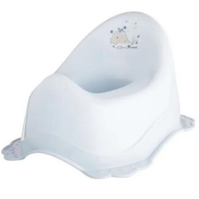 Dzięki wygodnemu, wysokiemu oparciu o ergonomicznym kształcie, nocnik zapewnia dziecku stabilną i komfortową pozycję podczas użytkowania. Gumki antypoślizgowe na spodzie zwiększają przyczepność do podłoża, co gwarantuje bezpieczeństwo nawet na śliskiej powierzchni.