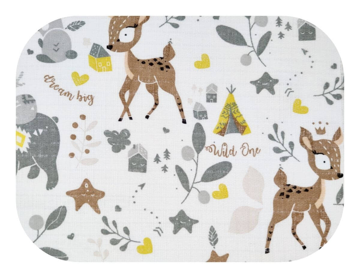 Pieluszka kolorowa, drukowana. Pieluszka tetrowa biała z motywem brązowych zwierzątek leśnych, uniwersalna pieluszka dla dziewczynki jak i chłopca. Pieluszka rozmiarze 70x80. Pieluszki tetrowe idealnie sprawdzą się w każdej codziennej sytuacji z dzieckiem. Przydatne w pielęgnacji noworodka oraz niemowlaka, podczas przewijania i odbijania maluszka jako kocyk w lecie, ręcznik po kąpieli oraz jako przytulanka podczas snu. Pielucha tetrowa powinna znaleźć się w każdej wyprawce dla noworodka.