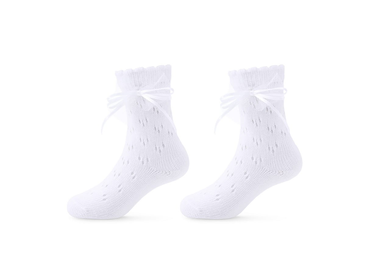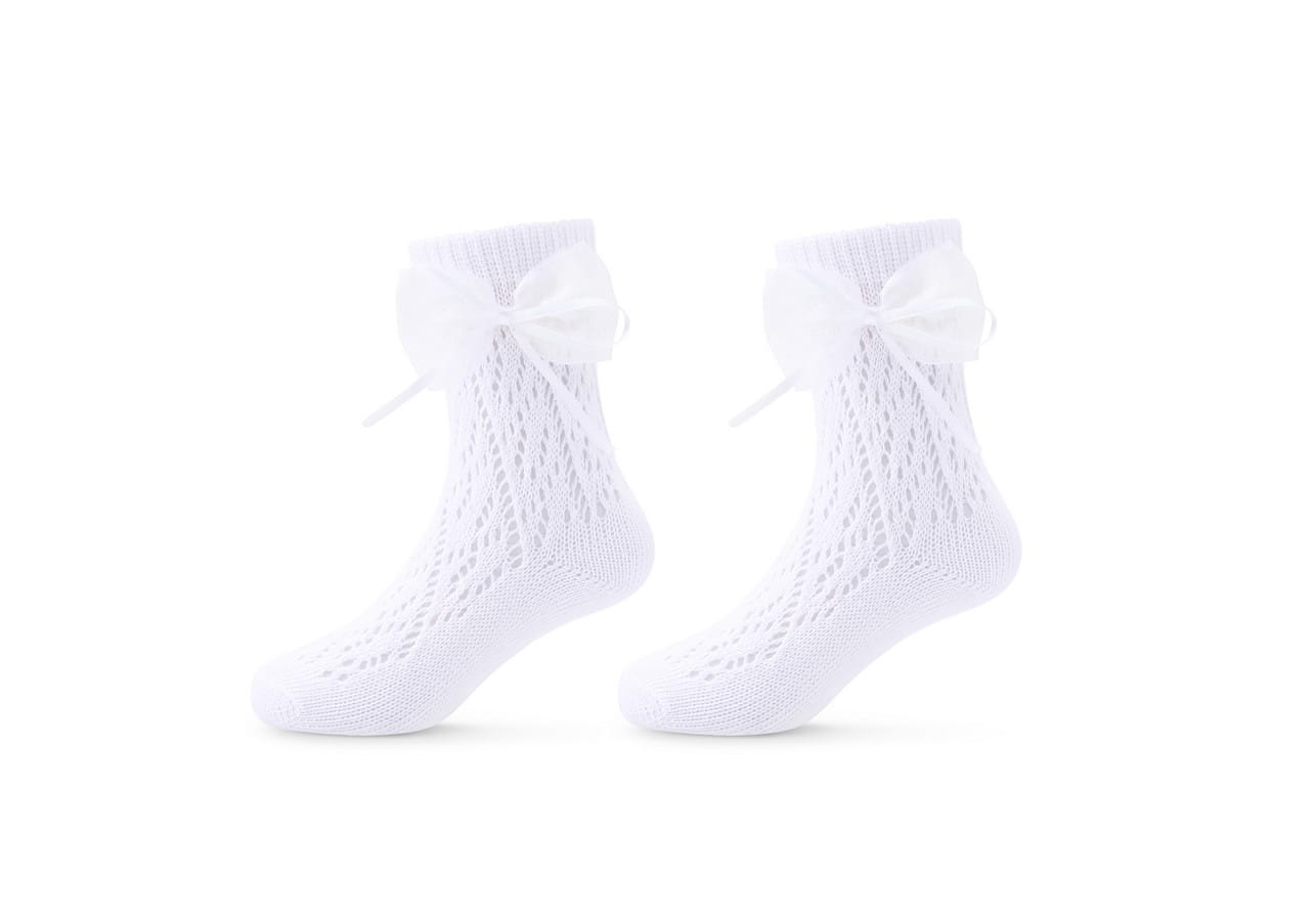 Skarpetki ażurowe z kokardką dla dziewczynki - białe | Be Snazzy SK-72