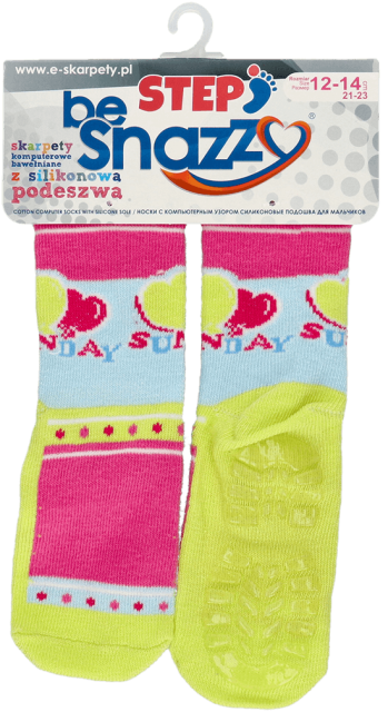 Bawełniane skarpetki antypoślizgowe ABS. Kolorowe skarpetki we wzorki, duży, silikonowy ABS zapewnia bezpieczeństwo dziecka podczas chodzenia. Idealne podczas stawiania pierwszych kroków. Skarpetki świetnie sprawdzą się podczas zabaw na trampolinie, dmuchanych zamkach itp. Polski producent Be Snazzy.