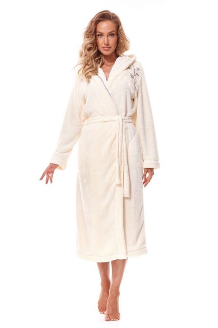 Szlafrok damski z kapturem Lili - Ecru | L&L 2321