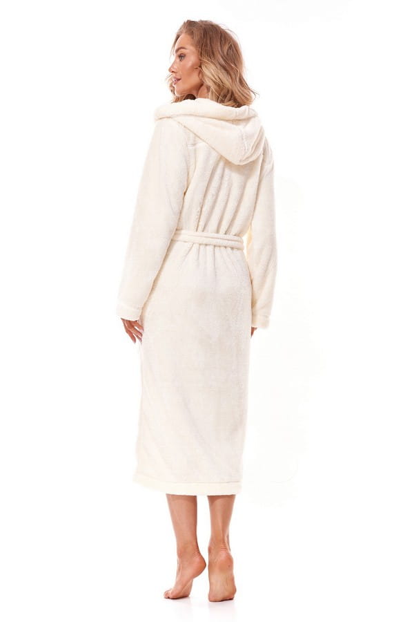 Szlafrok damski z kapturem, długi | Ecru - L&L