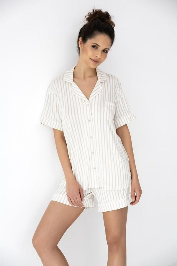 Wiskozowa piżama damska zapinana na guziki z kołnierzykiem Davina w paski od Sensis