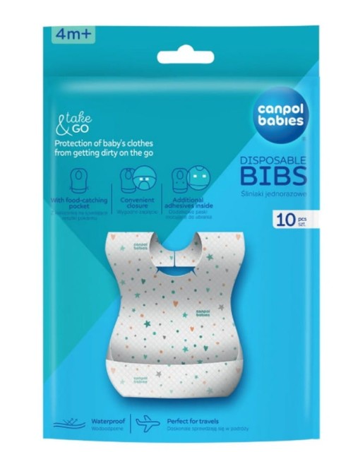 Wodoodporne śliniaki jednorazowe Canpol babies to praktyczna i higieniczna alternatywa dla klasycznych śliniaków materiałowych, idealna w podróży i podczas spacerów. Chłonna warstwa wierzchnia oraz wodoodporny spód chronią ubranko maluszka przed zabrudzeniem, a wywijana kieszeń wyłapuje spadające resztki pokarmu.