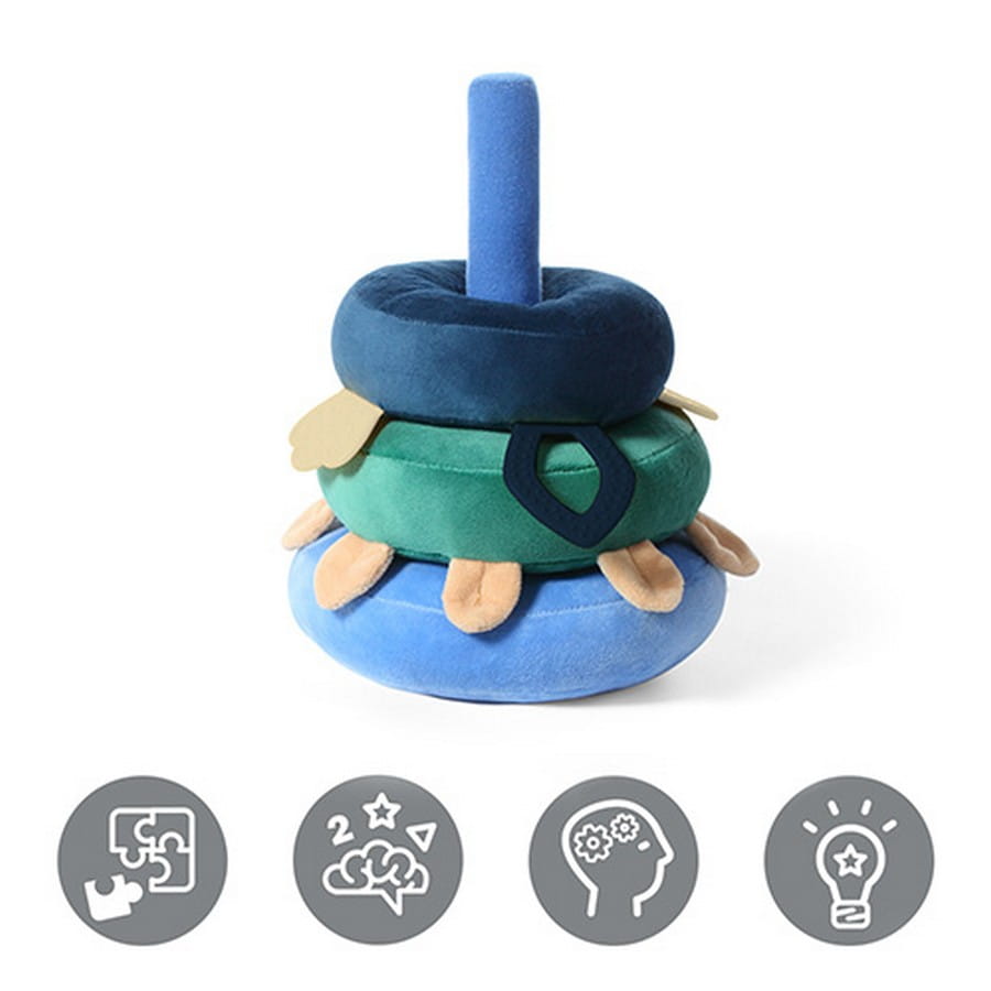 - Możliwość układania: Zabawka składa się z kilku części, które można ułożyć w wieżyczkę, stymulując rozwój mózgu i zdolności poznawcze dziecka.
