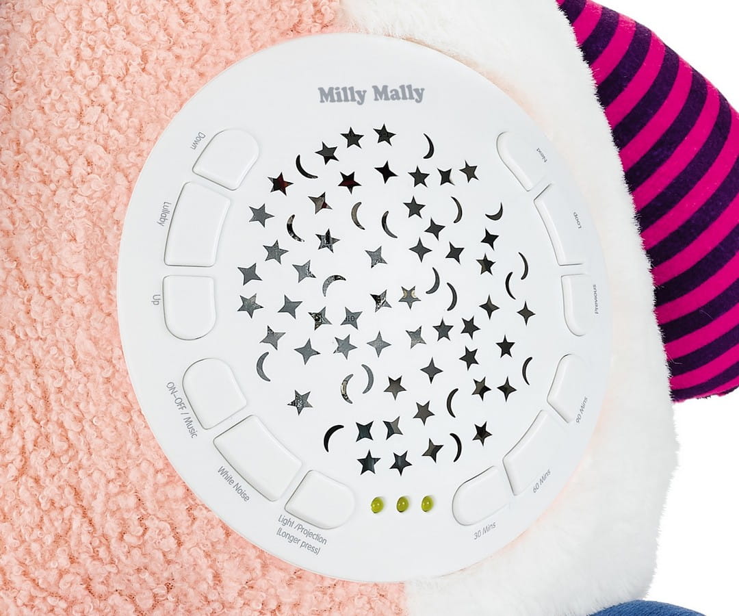Milly Fox to mięciutka pluszowa zabawka z wbudowanym projektorem, która przekształca pokój dziecka w rozgwieżdżone niebo. Maluszek może zasypiać słuchając kojących dźwięków i kołysanek, podczas gdy kolorowe światła tworzą relaksującą atmosferę.