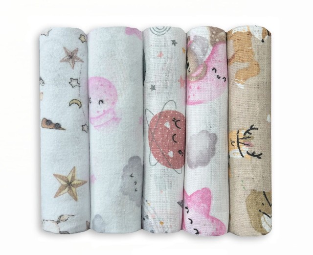 Zestaw 5 pieluszek dla niemowląt – flanelowe i tetrowe, drukowane | Polski producent