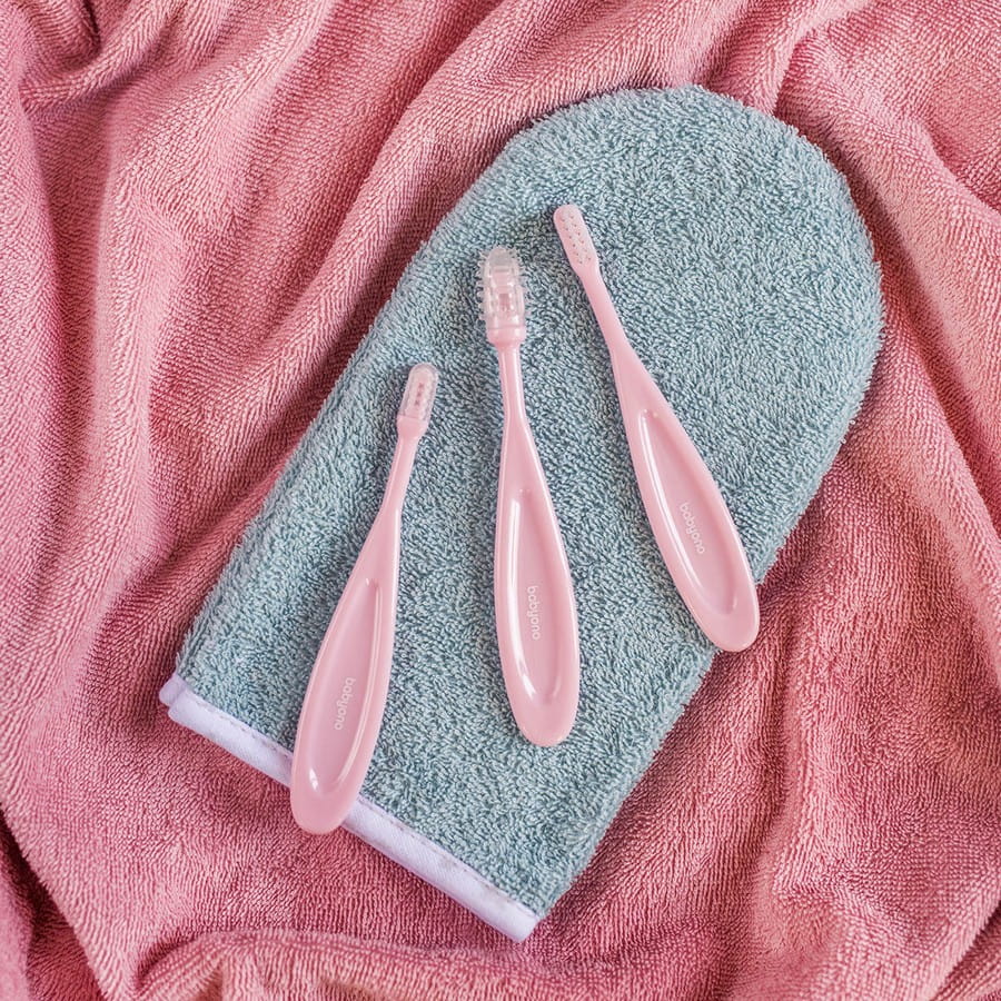 Zestaw szczoteczek do zebów i dziąseł dla niemowląt - różowy | Babyono
