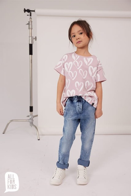 Pudrowa bluzka w białe serca polskiej marki All for Kids zachwyci każdą dziewczynkę i z pewnością stanie się ulubionym elementem codziennych outfitów szkolnych i przedszkolnych.