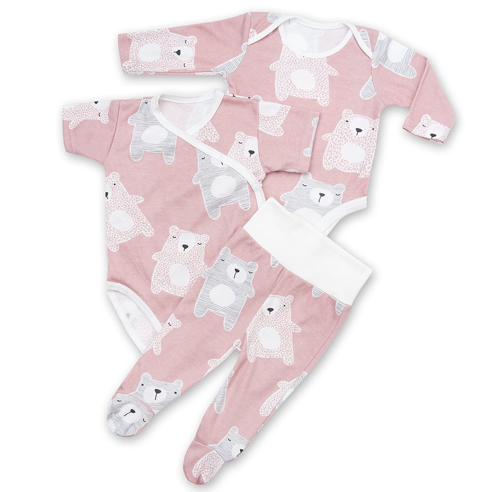 Bawełniane body z krótkim rękawem w urocze misie koala na pudrowym tle. Wzór idealny dla dziewczynki. Bodziak rozpinany jest na bezniklowe napy po całej długości oraz w kroku, umożliwia to szybką wymianę pieluszki nawet w nocy, podczas snu niemowlaka. Body kopertowe dostęne jest w rozmiarach 56,62,68. Ubranko może być noszone samodzielnie lub w zestawie z innymi częściami garderoby np. z półśpiochami.