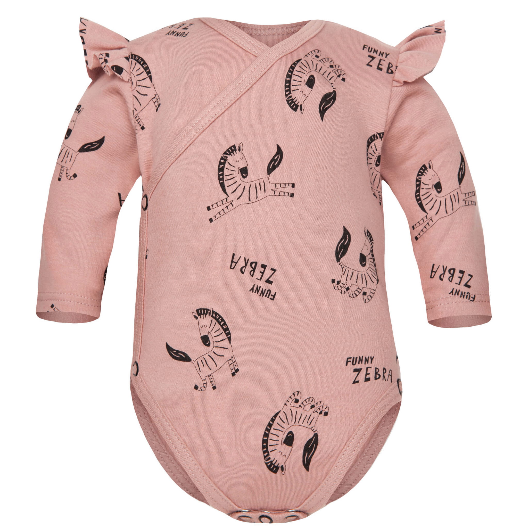 Body kopertowe niemowlęce z długim rękawem Funny Zebra Blush - Dolce Sonno
