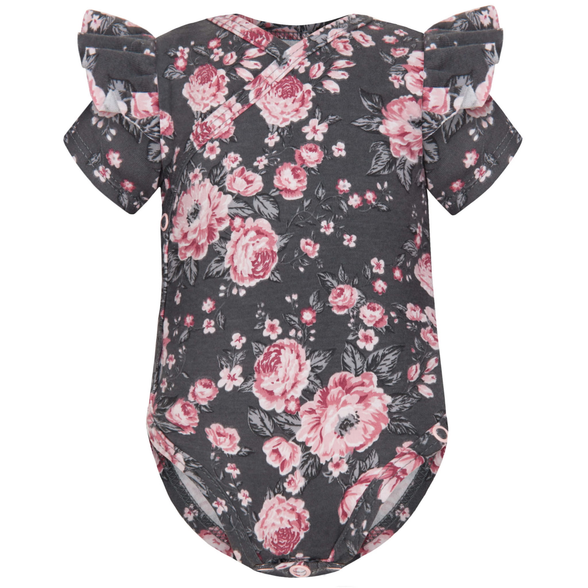 Body kopertowe dla niemowlaka z krótkim rękaw | Kwiaty Grafit Dolce Sonno