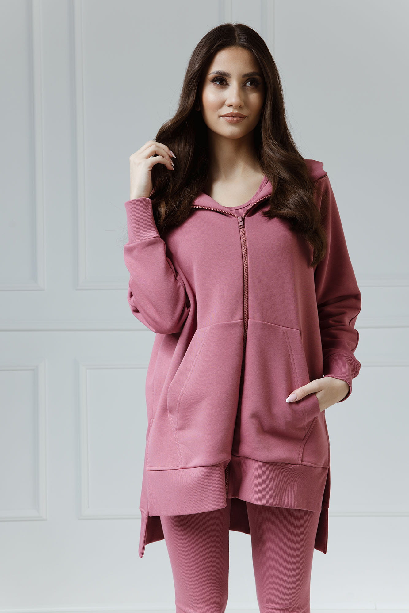 Comfort & Luxury - Długa bluza na ekspres z kapturem Layla Malaga