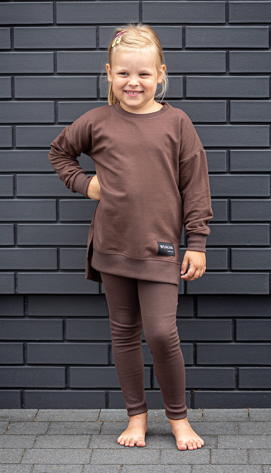 Długa bluza dla dzieci z dłuższym tyłem Little Ana/Czekolada - Wualaa by dolce sonno