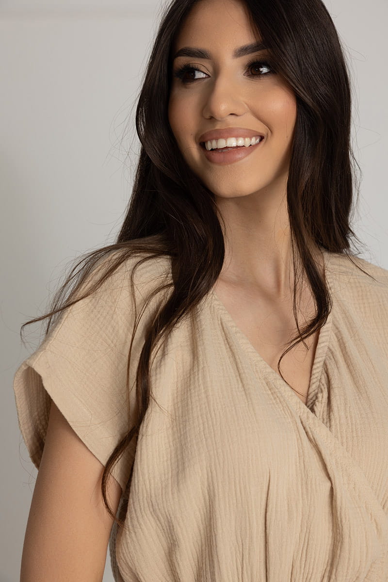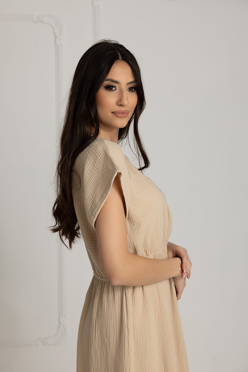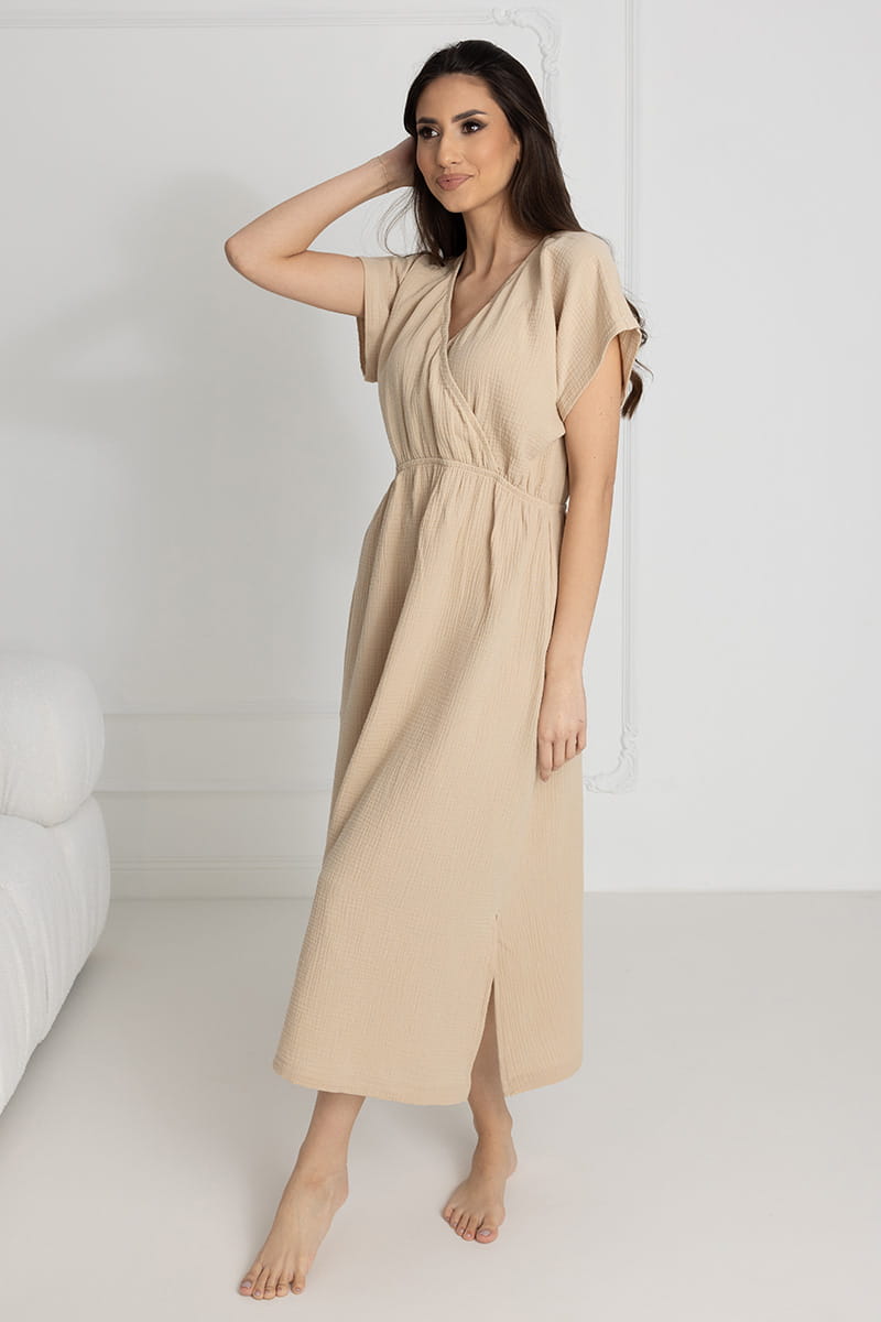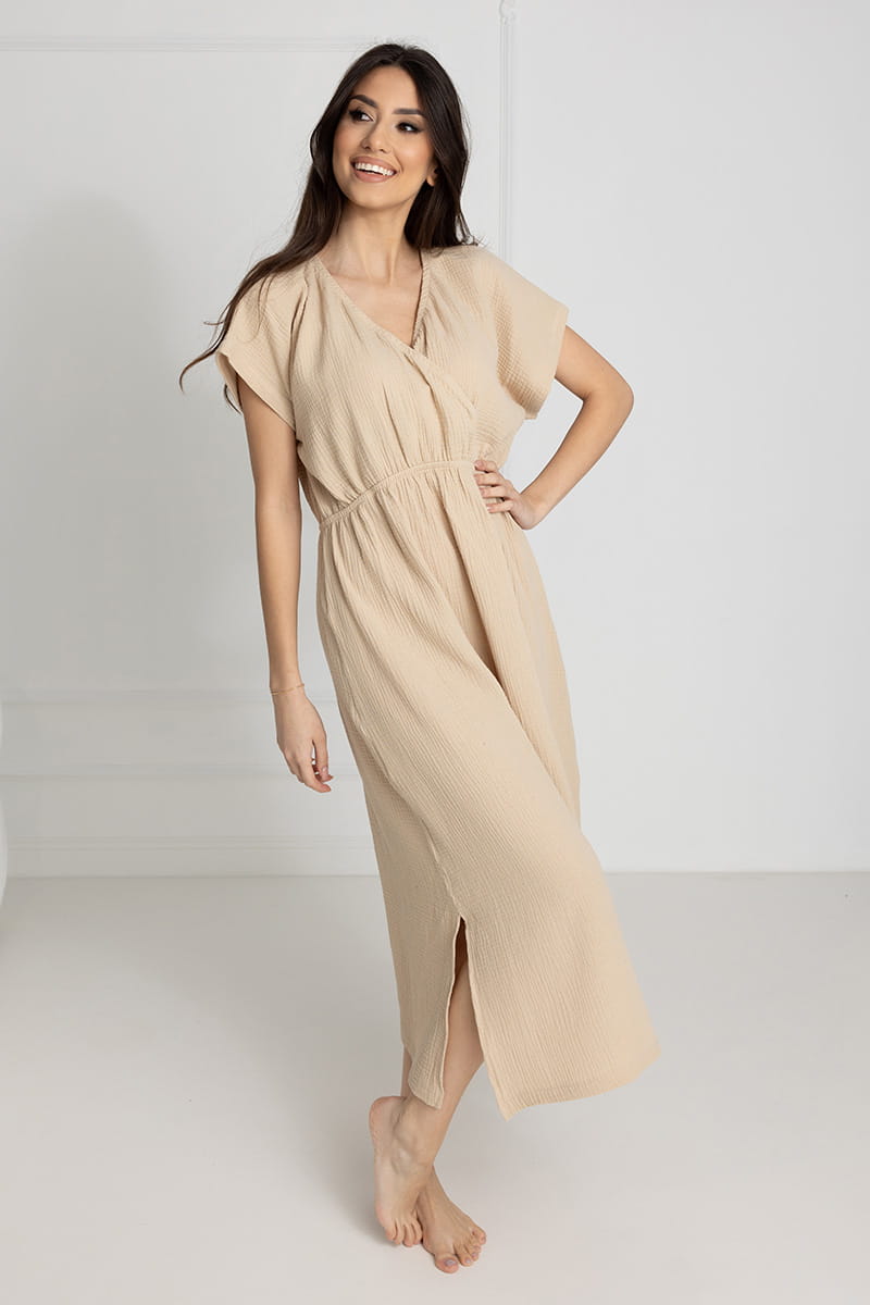 Długa koszula nocna muślinowa Izyda / Słomkowa - Dolce Sonno