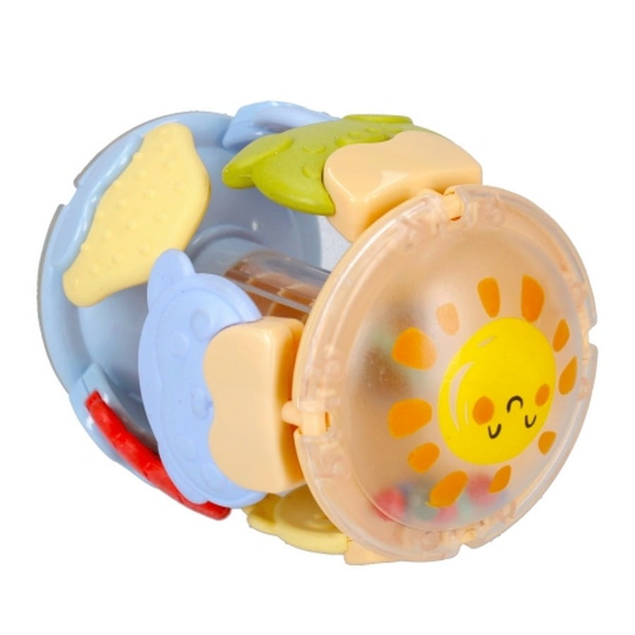 Tęczowe kuleczki w trzonie kuli tańczą i wirują przy każdym potrząśnięciu, wydając radosne grzechoczące dźwięki. To nie tylko stymuluje zmysł słuchu, ale również rozwija percepcję wizualną maluszka. Miękkie wypustki na kuli, różniące się fakturą i kształtem (od owoców po misie), to doskonałe narzędzie nauki manewrowania i eksploracji dla małych paluszków. To także rozwijanie zdolności manipulacyjnych i manualnych w najpiękniejszy sposób.
