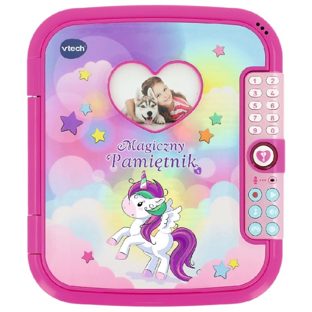 Interaktywny, magiczny pamiętnik to wspaniała zabawka, w której dziecko może zapisać swoje sekrety, umieścić w specjalnym schowku drobne skarby, a wszystko to pod tajnym, zaszyfrowanym hasłem. Pamiętnik posiada możliwość nagrywania i odtwarzania głosów, jego modyfikację oraz grę matematyczną "Znajdź cyfrę'. Na okładce pamiętnika znajduje się miejsce na zdjęcie właściciela.
