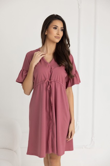 Krótki rękaw w stylu kimona z falbaną oraz długość przed kolano sprawiają, że koszula jest idealna na każdą porę roku, zapewniając swobodę ruchów i lekkość. Dekolt w szpic z bezniklowymi napami pozwala na szybki i łatwy dostęp do piersi, co znacznie ułatwia karmienie.