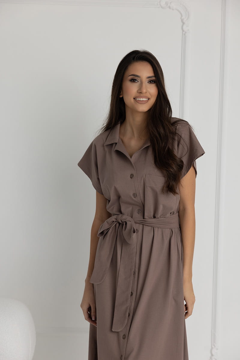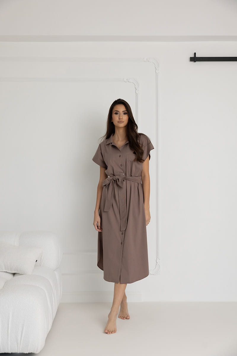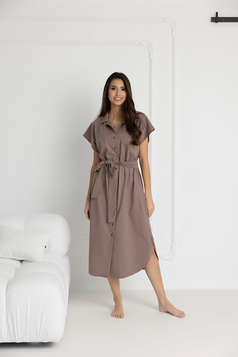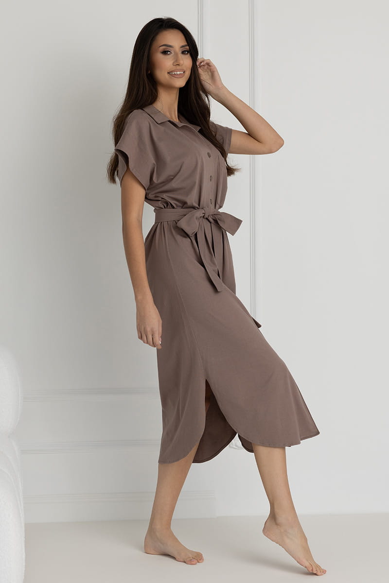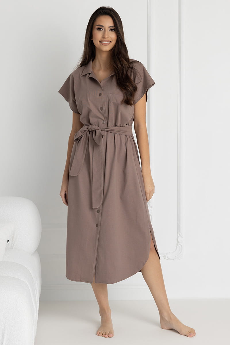 Długa koszula nocna na guziki Ingrid/ Taupe - Dolce Sonno