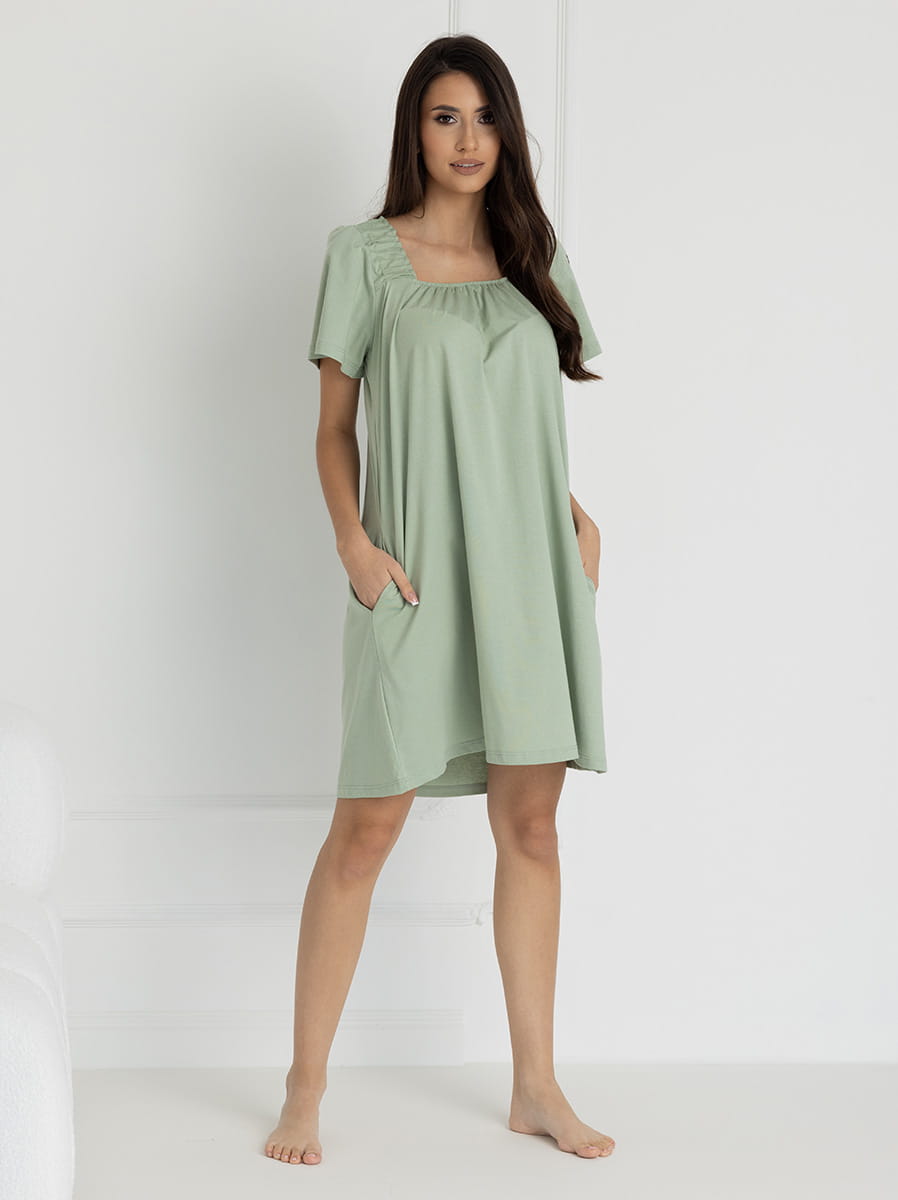 Koszula nocna z kieszeniami Parma/ Szałwia - Wyjątkowy krój i komfort!
