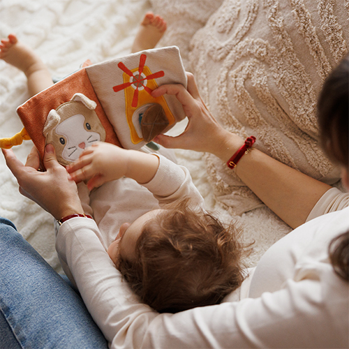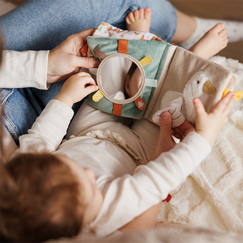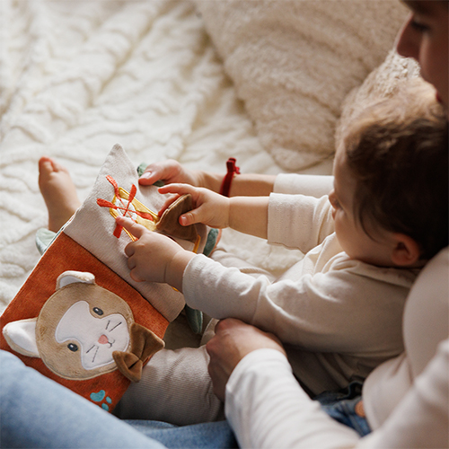 Książeczka została zaprojektowana tak, aby dziecko mogło swobodnie ją chwytać, przewracać i eksplorować. Dzięki lekkiej, miękkiej formie sprawdza się zarówno w domu, jak i podczas spacerów czy podróży, gdzie łatwo można ją zawiesić w zasięgu małych rączek.