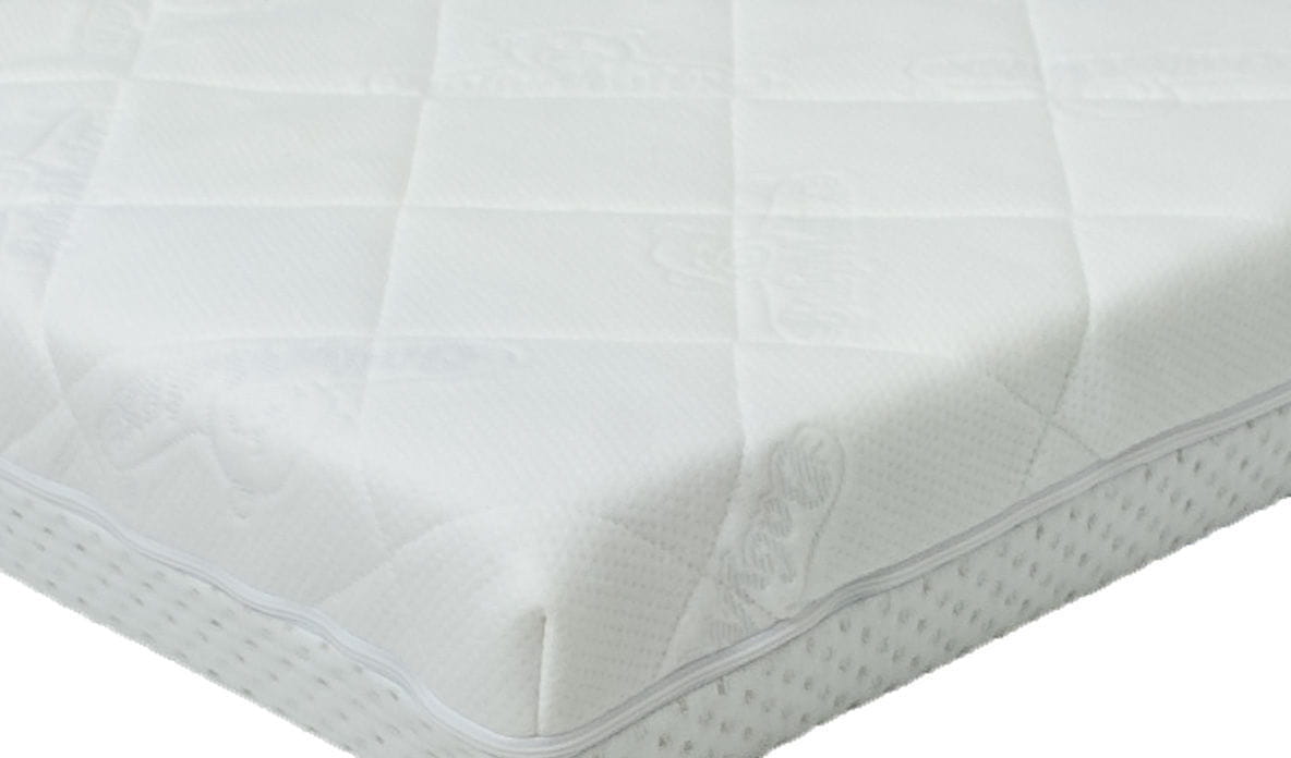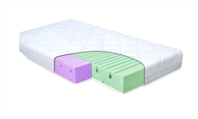Wypełnienie materacyka stanowi pianka termoplastyczna z pamięcią kształtu Memory Foam dla idealnego dopasowania do kształtu ciała dziecka pod którą znajdują się kanały wentylacyjne odprowadzające nadmiar pary i wilgoci na zewnątrz materaca.