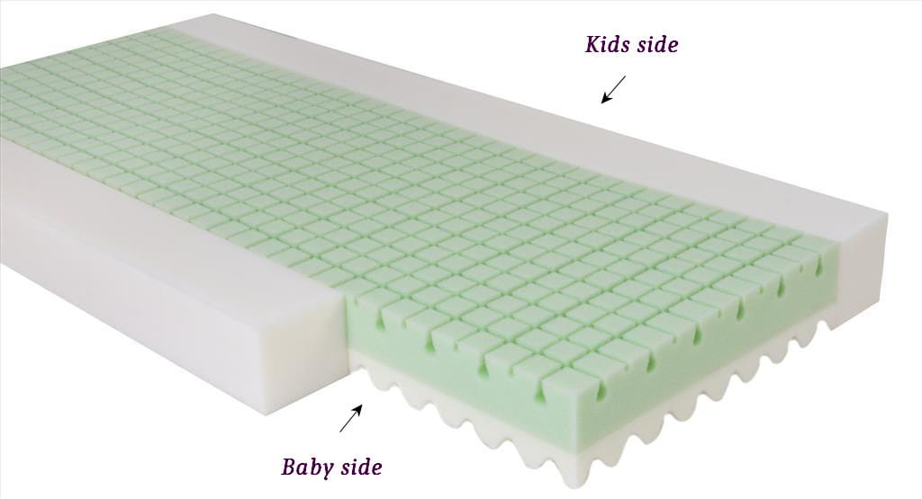 - Belki stabilizujące z pianki o zwiększonej gęstości, dzięki którym dziecko leży wygodnie na całej powierzchni materaca.
