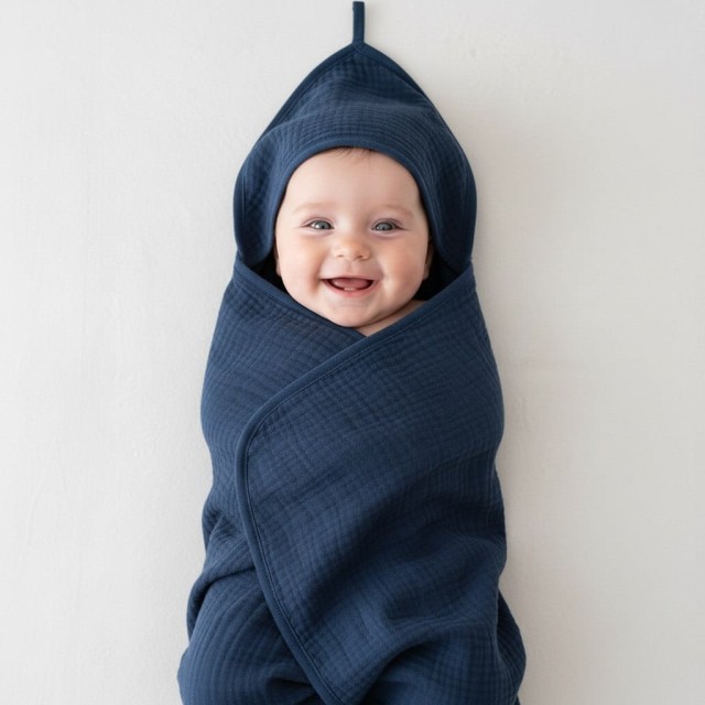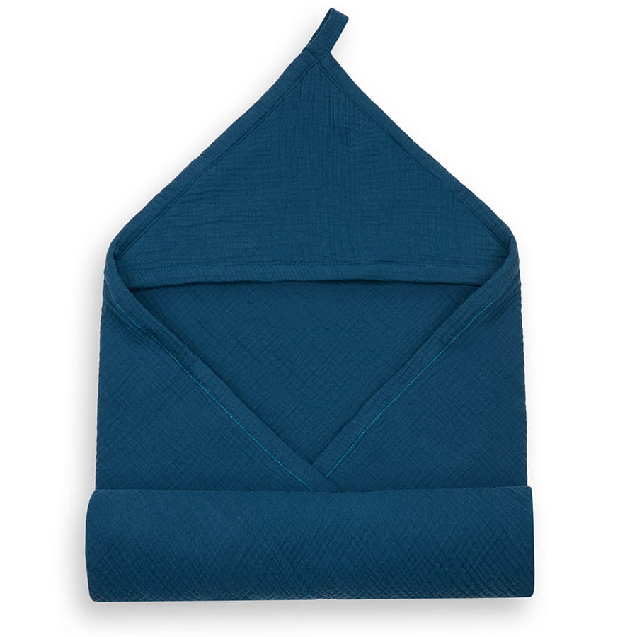 Muślinowe okrycie kąpielowe z kapturem 80x85 cm - Granat | Dolce Sonno