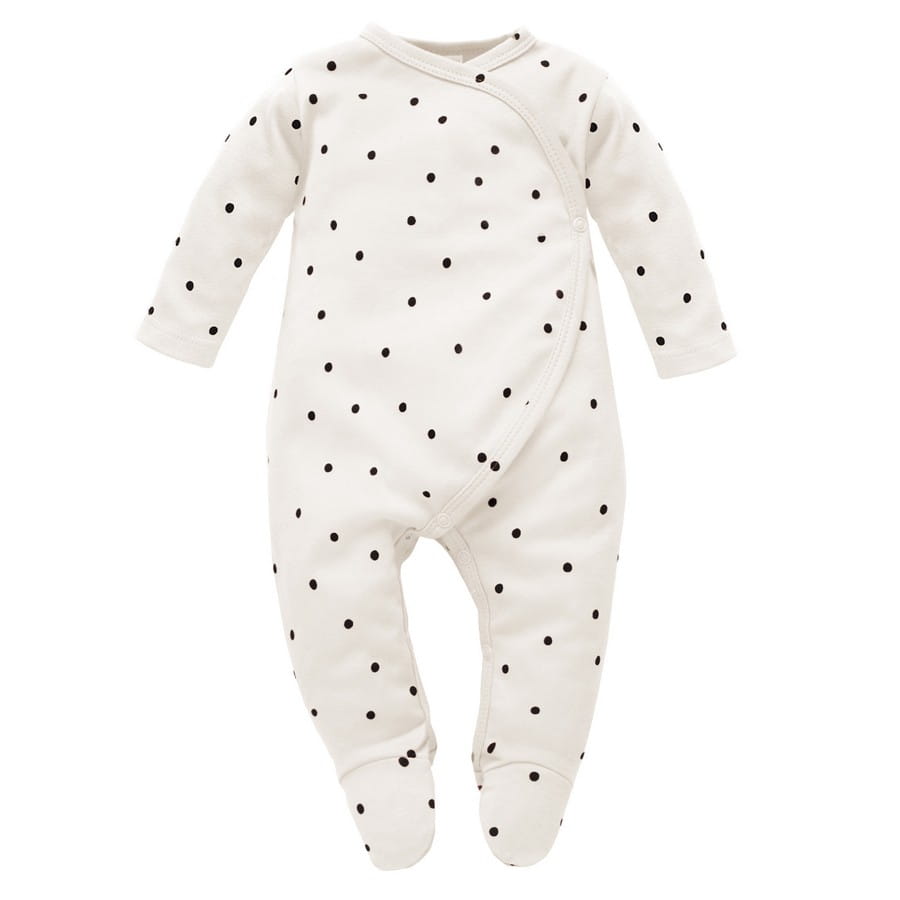 Bawełniany pajacyk dla niemowląt na napy ecru w groszki - Tres Bien | Pinokio