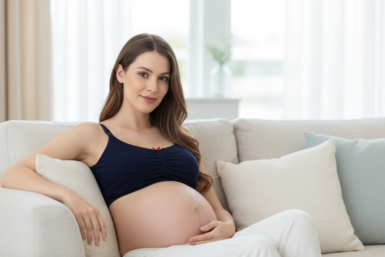 Noszony w czasie ciąży daje poczucie komfortu, wygody oraz świetnie wspiera biust podczas spania.