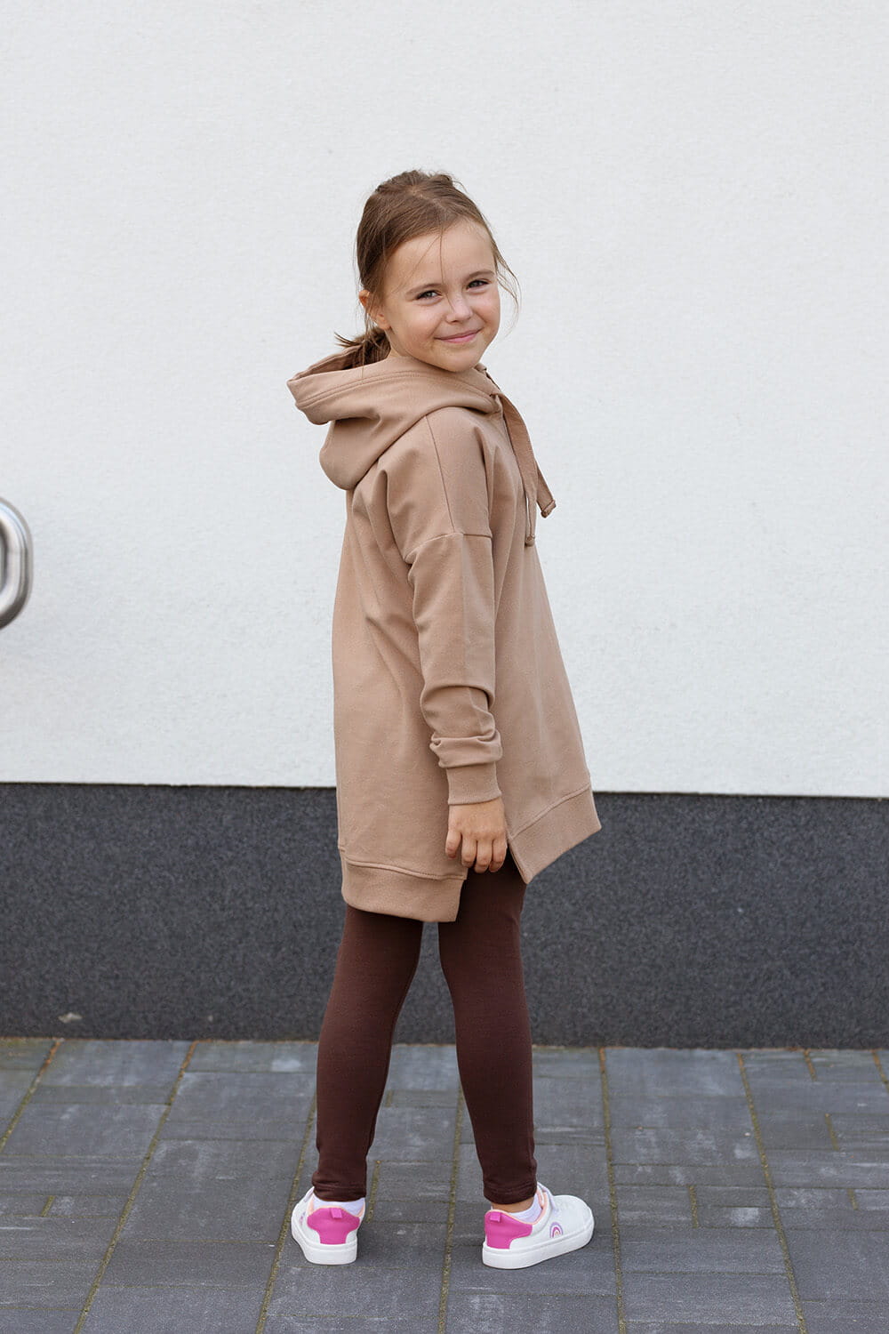 Jednokolorowe legginsy dla dziewczynki w pięknym kolorze czekoladowym. Uszyte z miękkiej, elastycznej i przewiewnej dzianiny bawełnianej Premium. Wysokiej jakości dzianina sprawia, że legginsy doskonale przylegają do ciała, świetnie kryją i zapewniają komfort termiczny. Legginsy posiadają długie nogawki i bezuciskową gumę w pasie.