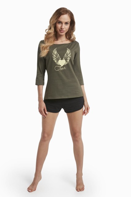 Piżama damska z rękawem 3/4 Khaki SKY - Dolce Sonno