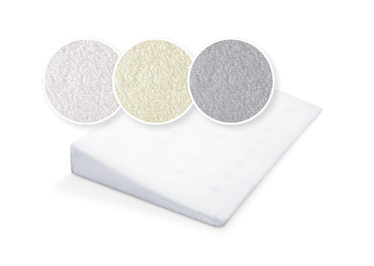 Poduszka klin ma rozmiar 60x36 cm, idealny do umieszczenia w standardowym łóżeczku niemowlęcym. Poszewka w kolorze ecri wykonana jest z wysokiej jakości mieszanki 82% bawełny i 18% poliestru, co zapewnia miękkość, trwałość i hipoalergiczność.