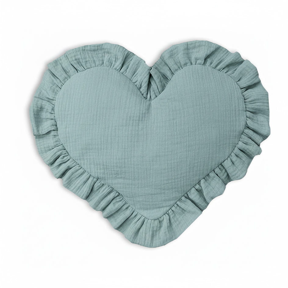 Uroczy design: Piękny kolor khaki oraz delikatna, miękka falbanka dodają poduszce wyjątkowego charakteru. Poduszka w kształcie serca to nie tylko praktyczny element wyposażenia, ale także piękna ozdoba do pokoju dziecięcego.