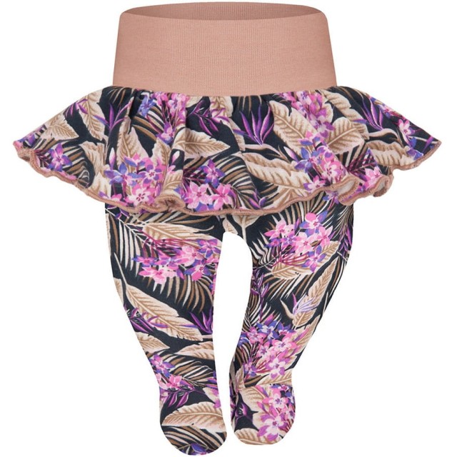 Bawełniane półśpiochy dla dziewczynki uszyte z oddychającej, certyfikowanej tkaniny Premium. Spodenki zdobi urocza miękka falbana i piękny motyw egzotycznych kwiatów. Zabudowane, wyprofilowane stópki, zapewniają dziecku wygodę i komfort termiczny. Natomiast szeroki, elastyczny pas sprawia, że spodenki nie zsuwają się i świetnie podtrzymują pieluszkę podczas aktywności w łóżeczku.