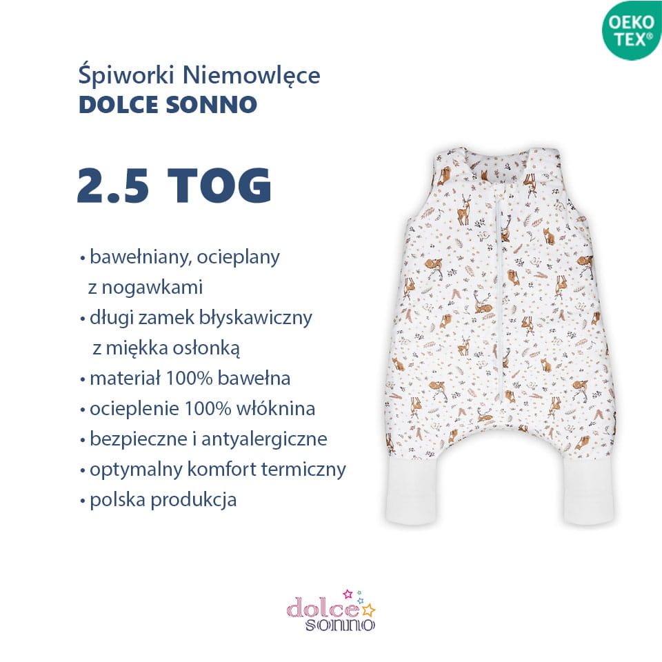 Całoroczny śpiworek bawełniany dla dziecka z nogawkami 2,5 TOG Sarenki | Dolce Sonno