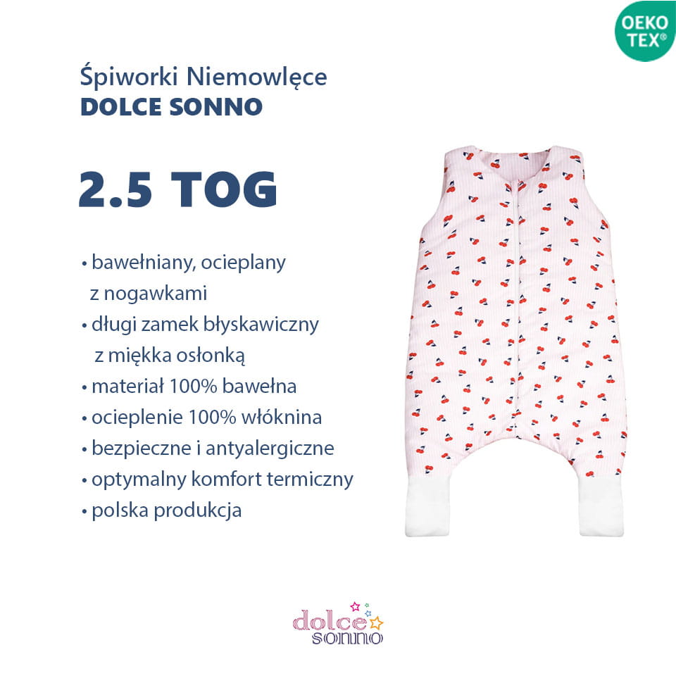 Całoroczny śpiworek bawełniany dla dziecka z nogawkami 2,5 TOG Sweet Cherry | Dolce Sonno