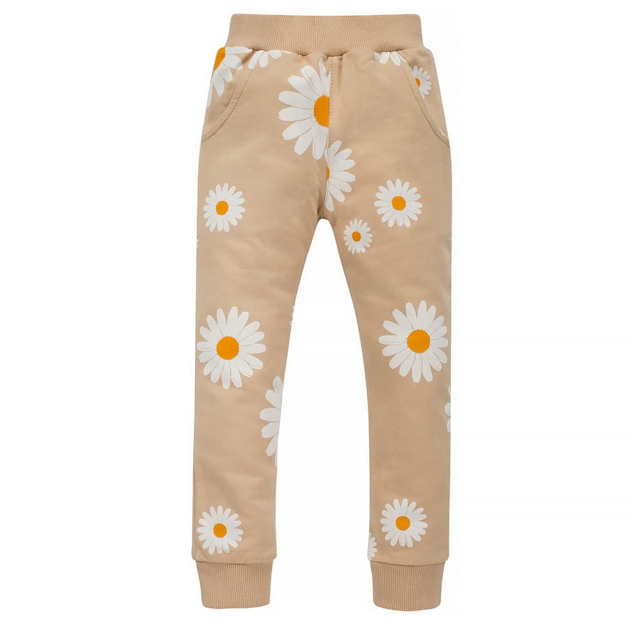 Spodnie dresowe dla dzieci i niemowląt beżowe w stokrotki - Daisy | Pinokio